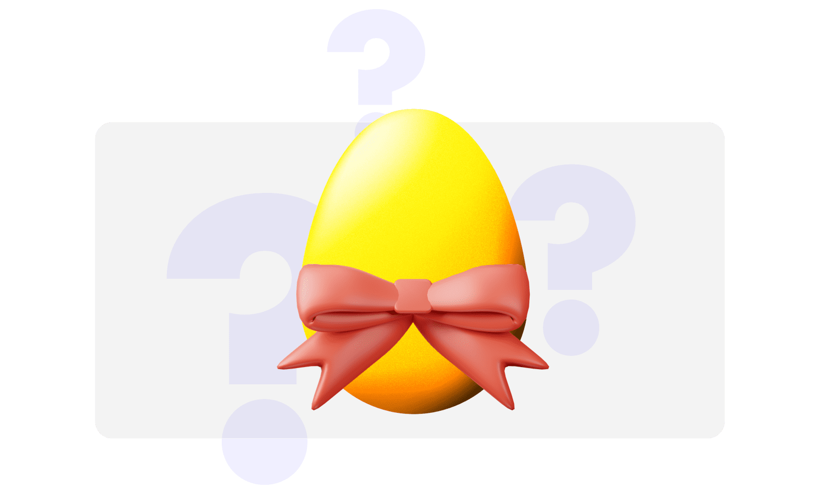 Easter Eggs are hidden surprises in the challenge, such as special prizes like a musician or bar. Keep an eye out for them!