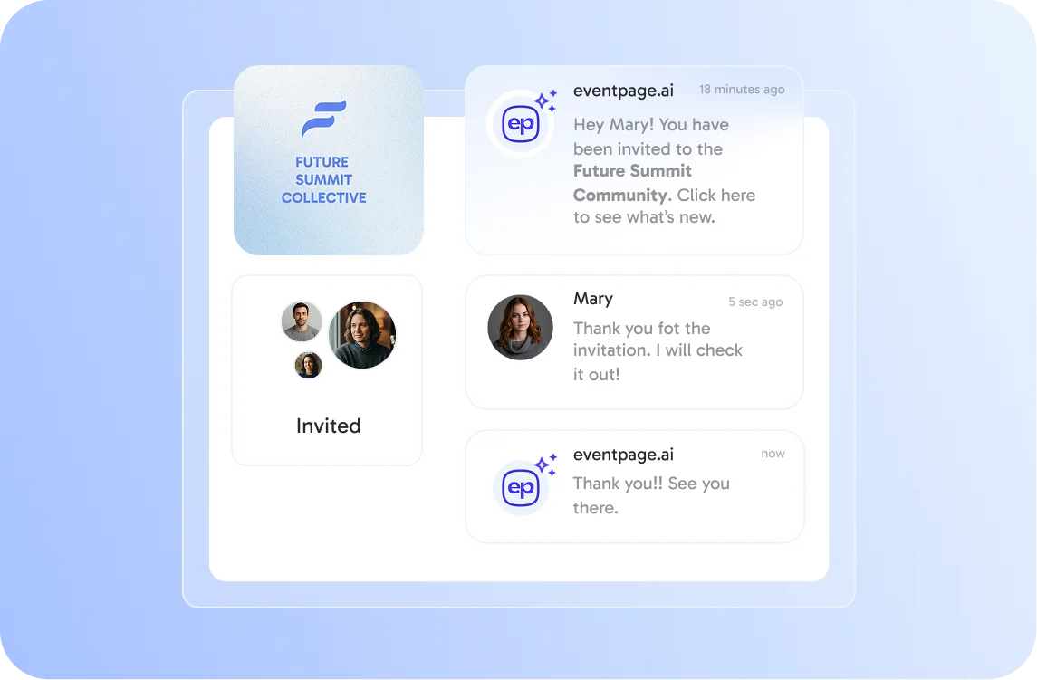 With eventpage.ai, you build, manage and grow your fully branded, AI-powered B2B or B2C community in one place – from onboarding and events to smart engagement and analytics.