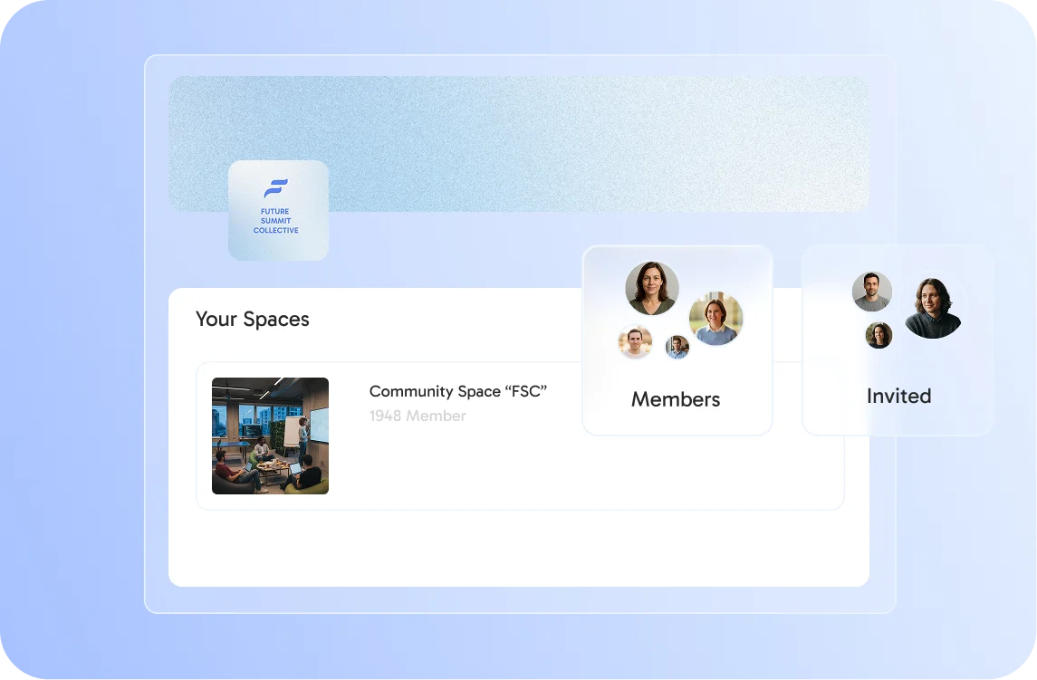 Perfect for startups, teams, and digital communities. Create and launch your own community in minutes – including branding, access settings, and event features.