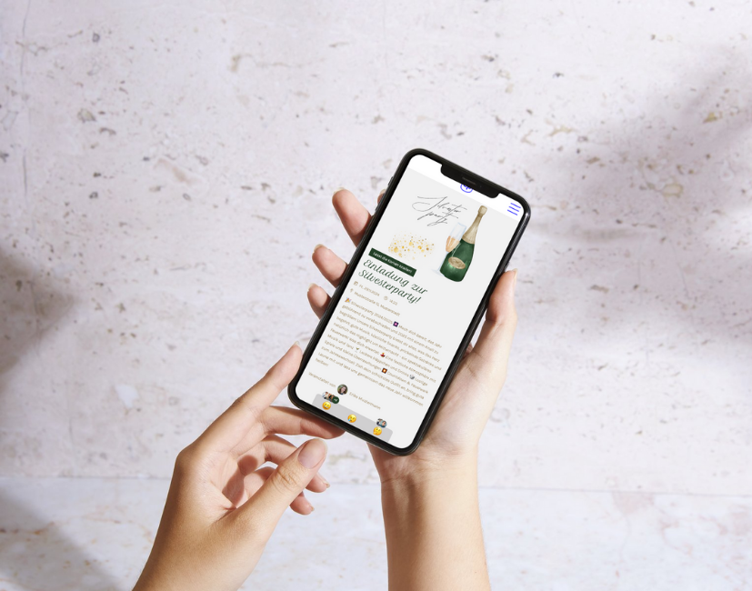 Nach der Gestaltung deiner Silvestereinladung erhĂ€ltst du einen digitalen Event-Link. Teile ihn bequem ĂŒber WhatsApp, Social Media oder E-Mail. So haben deine GĂ€ste alle wichtigen Infos immer dabei – von der Partyzeit bis zur Kleiderordnung.