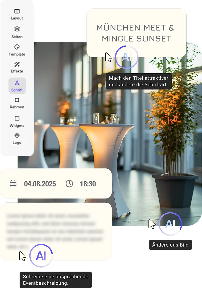 Mit KI-Assistenz und Templates in Minuten zur fertigen Eventseite.